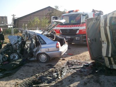 تصادف شدید مینی بوس و پراید در جاده فیروزه یک کشته و یک زخمی بر جای گذاشت .