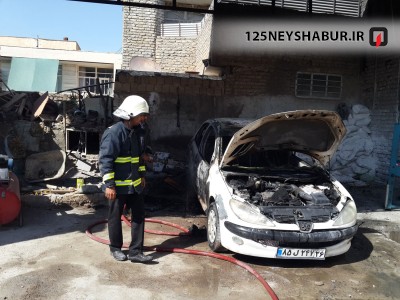 خودور 206 هنگام جوشکاری در داخل تعمیرگاه دچار آتش سوزی شد