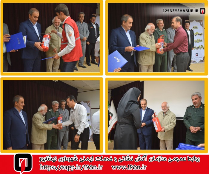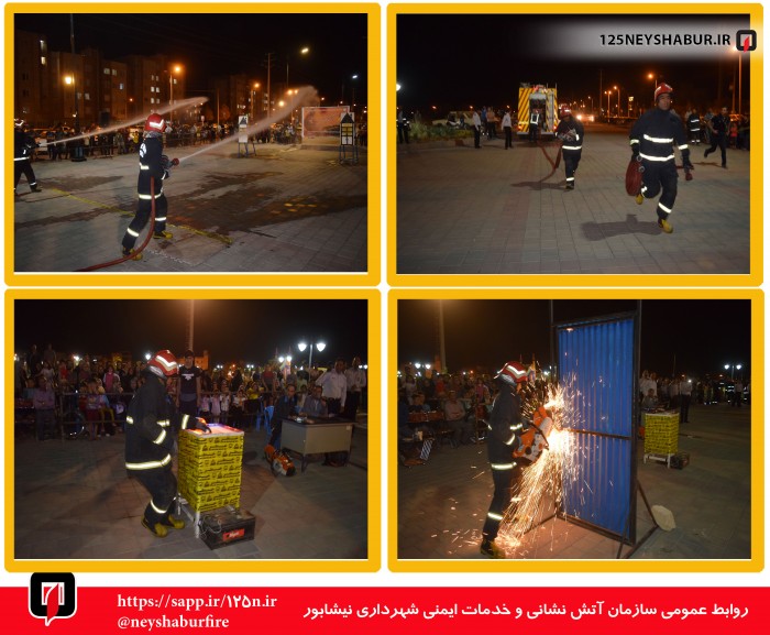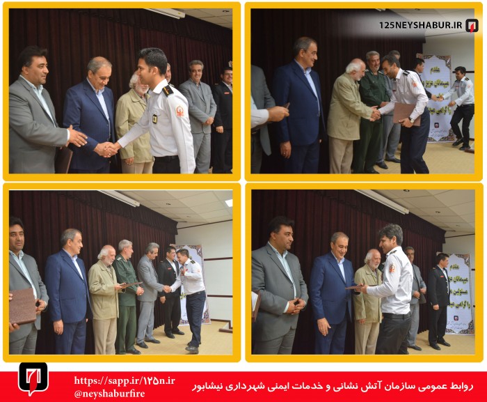 وی خاطر نشان کرد : آتش نشانان در دومین روز از هفته ایمنی و آتش نشانانی در مراسم عبادی سیاسی نماز جمعه نیشابور شرکت کردند .