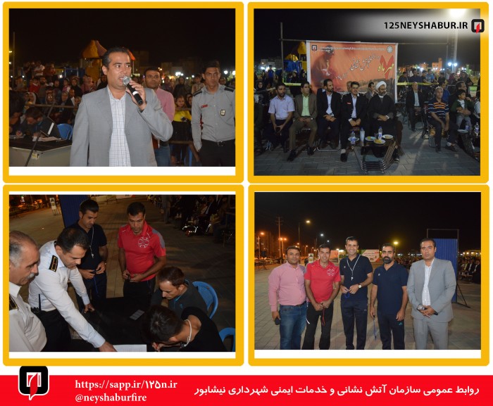 بقه گزارش روابط عمومی سازمان آتش نشانی و خدمات ایمنی شهرداری نیشابور ، سید مهدی حسینی رئیس سازمان گفت : برنامه های گرامیداشت هفتم مهرماه روز ملی ایمنی و آتش نشانی در قالب هفته ایمنی و آتش نشانی برگزار شد .