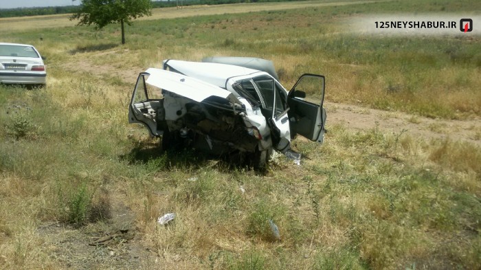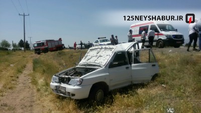 برخورد شدید خودرو پژو پارس با پراید در مسیرجاده نیشابور به مشهد موجب انحراف و واژگونی خودرو پراید شد .