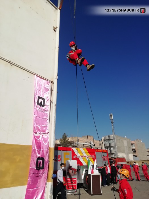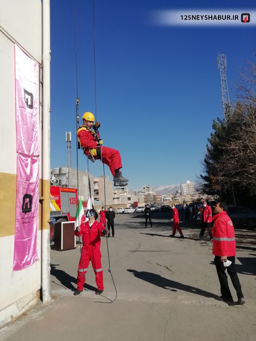 در گرامیداشت اولین سالگرد سپهبد شهید حاج قاسم سلیمانی دومین دوره مسابقا ت امداد و نجات آتش نشانان نیشابور در گرایش صعود و فرود از طناب برگزار شد .