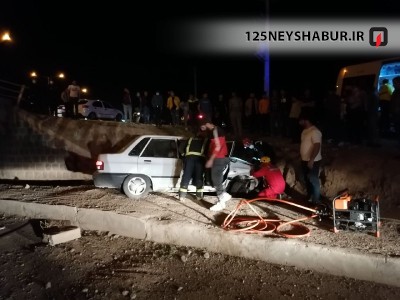 با تماس شهروندان با سامانه ۱۲۵ سازمان آتشنشانی نیشابور حادثه سقوط یک دستگاه خودرو سواری پراید از روی پل در بلوار شهید شوشتری اعلام شد .