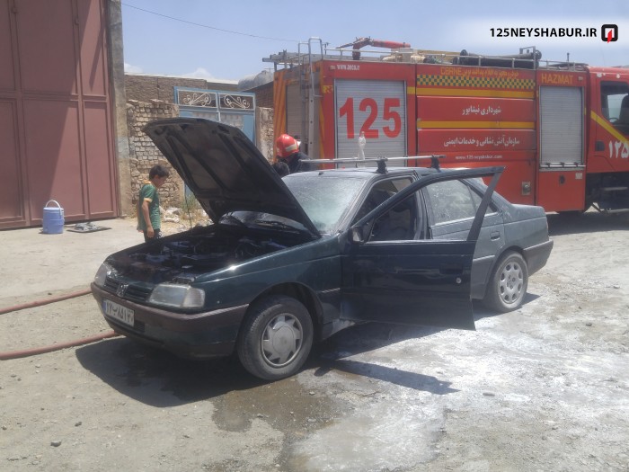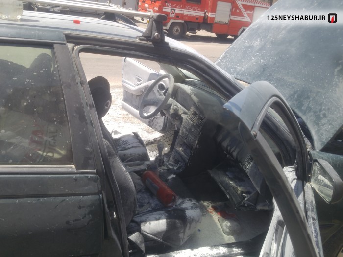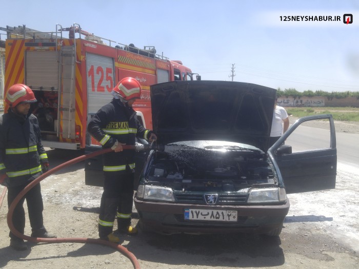 حریق خودرو که توسط آتش نشانان اطفاءشد