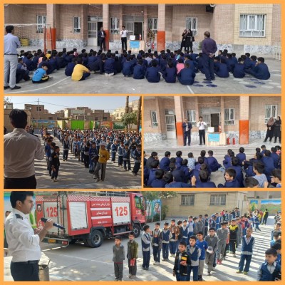 همزمان با هفته پدافند غیرعامل دانش آموزان مدارس نظیری و شهید سلیمانی آموزش ایمنی و آتش نشانی را فرا