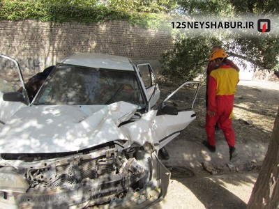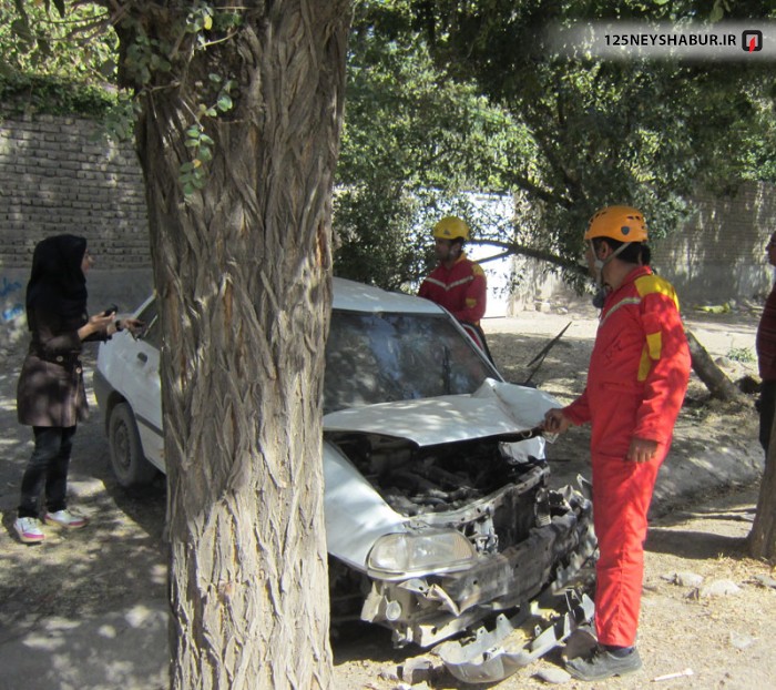 تصاویر انحراف خودرو پراید وبرخورد با درخت