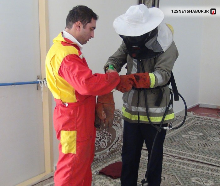 تیم آتش نشانی که حضور زنبورها را در بالای پشت بام مشاهده کرده بودند تقریبا مطمئن شده بودند که در داخل لوله زنبور است به همین سبب یکی از آتش نشانان با استفاده از کلاه زنبور و دستکش داخل اتاق شد و با استفاده از حشره کش نسبت به ازبین بردن زنبورها اقدام نمود .