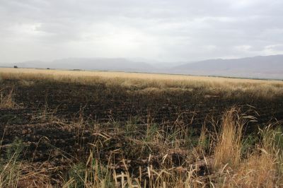 یک هکتار سفالی زار گندم در حاشیه اتوبان نیشابور به مشهد دچار آتش سوزی شد .