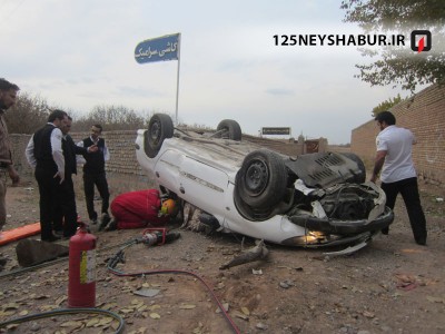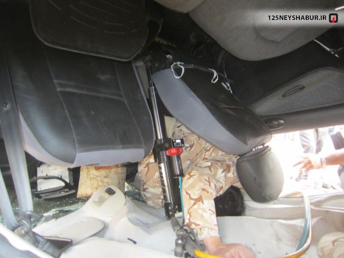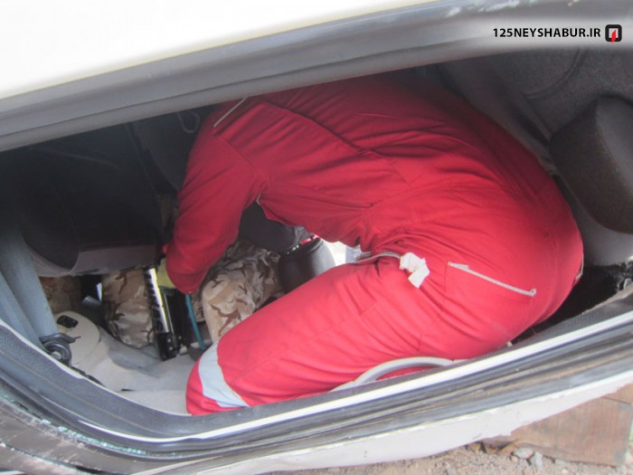 4 نفر از سرنشینان پیش از رسیدن آتش نشانان از داخل خودرو خارج شده بودند ولی راننده که دست چپش از شیشه بیرون بود در زیر ماشین مانده و داخل خودرو محبوس شده بود . آتش نشانان پس از عملیات احتیاط حریق و ثابت سازی خودرو با استفاده از سیستم جکهای تلسکوپی هیدرولیک اقدام به رهاسازی راننده کردند و او را نیز تحویل امدادگران اورژانس نمودند .