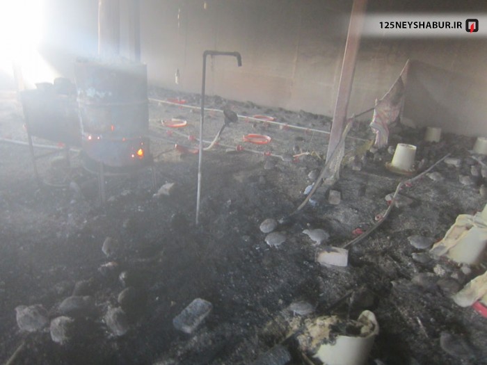 نشت گازوئیل از بخاری مرغداری موجب آتش سوزی در آنجا شد .