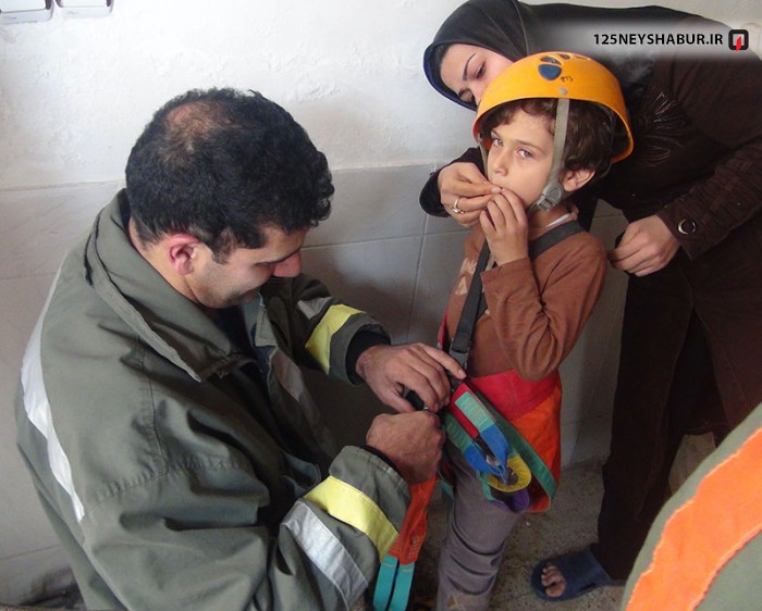با تماس والدین کودک به سامانه 125 آتش نشانی نیشابور یک تیم از نجاتگران ایستگاه 1 به محل اعزام شدند .