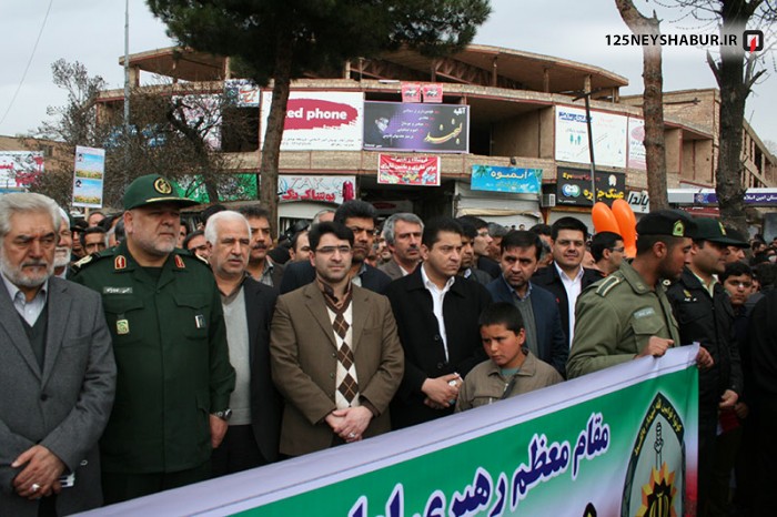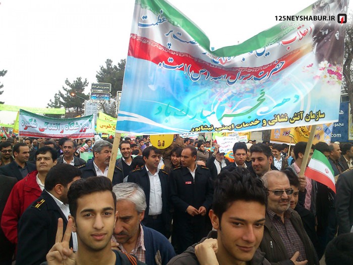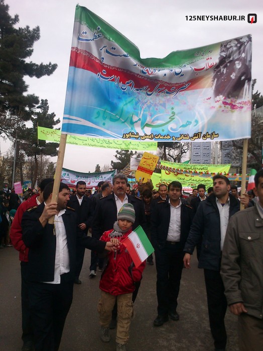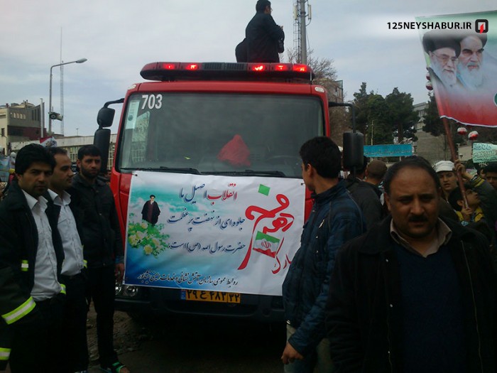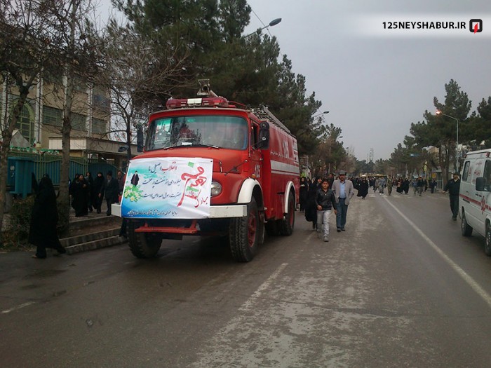 مدیر عامل و آتش نشانان نیشابور همگام با سایر اقشار مردم در راهپیمایی ٢٢ بهمن شرکت کردند