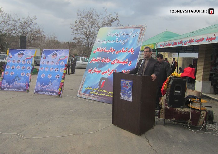 در مراسمی که به مناسبت یازدهمین سالگرد شهدای آتش نشان و سایر جان باختگان حادثه انفجار قطار باربری در ایستگاه خیام نیشابور برگزار شد جمع کثیری از مردم ، خانواده شهدا و مسئولین شهرستان حضور داشتند .