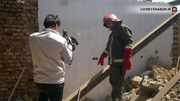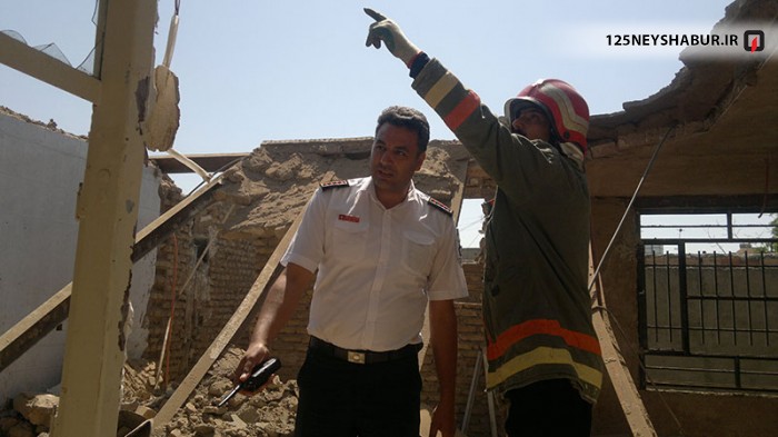 با اعلام این حادثه به سامانه 125 ستاد فرماندهی آتش نشانی نیشابور 3 تیم از آتش نشانان و نجاتگران سازمان به محل اعزام شدند . در این حادثه 3 کارگردر داخل ساختمان مشغول کار بوده اند که به علت قرار گرفتن آهن ها بر روی یک دیوار ده سانتی متری این دیوار فرو ریخته و سقف نیز خراب شده بود . دو نفر از کار گران به سمت بیرون فرار کرده بودند که آسیب سطحی و جزئی به آنها وارد شده بود ولی یکی از کتار گران در زیر آوار مانده بود که بلافاصله نیروهای آتش نشانی وی را رها ساختند . با رسیدن آمبولانس اورژانس 115 مصدوم برای درمان به بیمارستان انتقال داده شد .