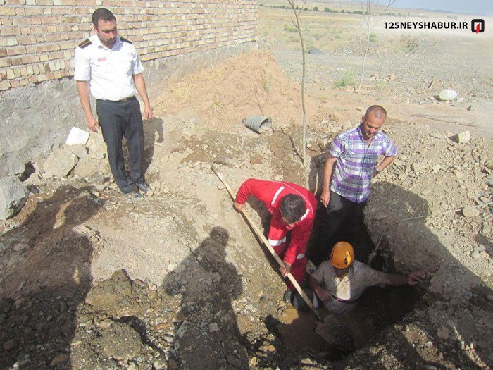 با تماس یکی از شهروندان به سامانه 125 ستاد فرماندهی آتش نشانی نیشابوریک گروه از نجاتگران آتش نشان به محل اعزام شدند. این حادثه زمانی رخ داد که مالک باغی نوساز در زمین های بالای روستای حمید آباد قصد برداشت آب غیر مجاز از لوله پرفشار آب روستایی روستاهای حمیدآباد ، بوژآباد و در بهشت را داشت . وی پس از حفر زمین در عمق حدود 3 متر به لوله رسید و کارگر 30 ساله ای که برای ایشان کار می کرد با سوراخ کردن لوله آب نتوانست جلو فشار آب را بگیرد و شدت فشار آب موجب شد که سنگ ریزه ها و چال و ماسه اطراف این گودال به سرعت اطراف پای وی را پر کرد به طوری که تا کمر در زیر چال و ماسه مدفون شد و گیر افتاد . آب نیز به سرعت در حال بالا آمدن بود و خطر غرق شدن کارگر افزایش می یافت .
