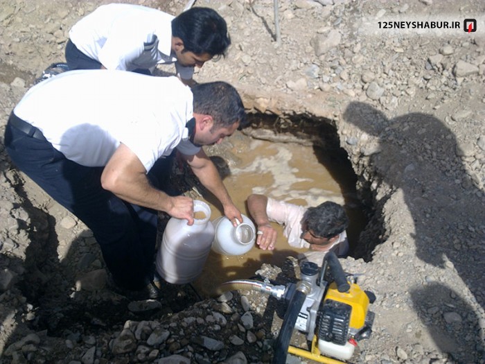 مردی که قصد برداشت آب غیر مجاز از یک لوله فشار قوی آب را داشت در داخل چاله ای که حفر کرده بود گیر افتاد و در خطر خفگی قرار گرفت .