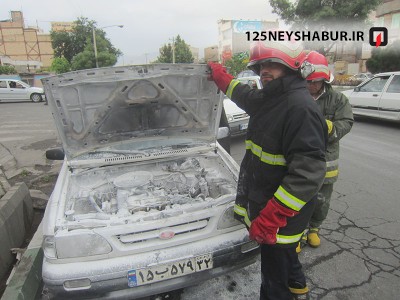 خودرو یی که در داخل تعمیرگاه به علت نشت بنزین و اتصال برق دچار آتش سوزی شده بود با سرعت عمل تعمیرکار با استفاده از خاموش کننده دستی از سوختن نجات یافت .