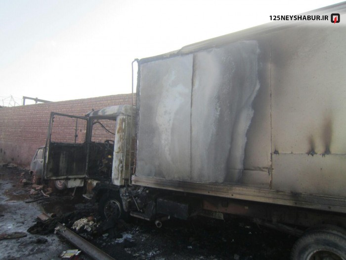 یک کامیون بادسان یخچال دار بر اثر بی احتیاطی در داخل یک گاراژ دچار آتش سوزی شد .