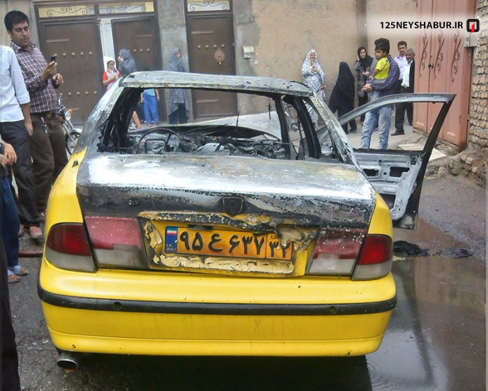 شعله های آتش ، رنگ زرد تاکسی را سوزاند و سیاه کرد