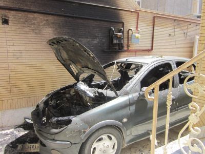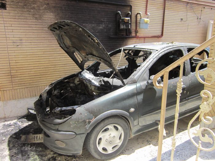 با اعلام این آتش سوزی به ستاد فرماندهی آتش نشانی نیشابور نیروهای عملیاتی آتش نشان به محل اعزام شدند . این خودرو با پاشیدن بنزین بر روی آن توسط فرد یا افراد ناشناس که شبانه وارد منزل شده بودند به آتش کشیده شده بود . زمانی که آتش نشانان به محل رسیدند خودرو در میان زبانه های آتش در حال سوختن بود و شیشه های پنجره طبقه پایین سوخته بود و آتش به پرده های این طبقه رسیده بود .