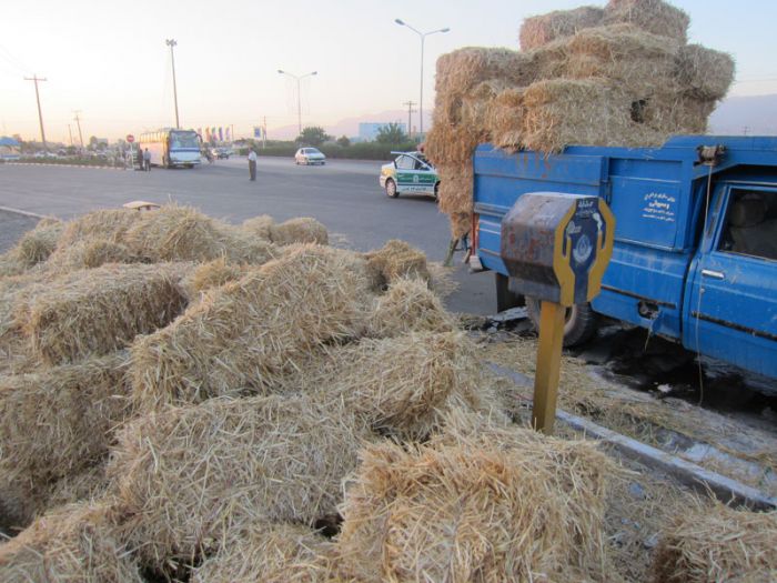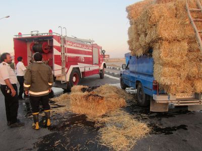 تصاویر آتش سوزی نیسان با بار پرس گندم