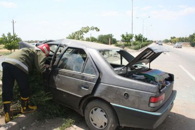 خودرو پژو ۴٠۵ به علت سرعت زیاد و انحراف به چپ با تیر چراغ برق برخورد کرد و واژگون شد . با اعلام این حادثه به سامانه ١٢۵ آتش نشانی نجاتگران آتش نشان به محل اعزام شدند .