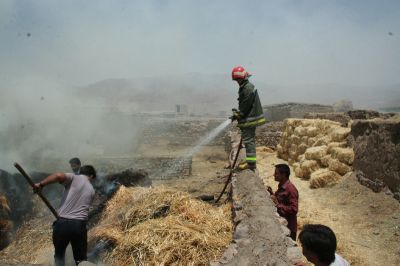 آتش سوزی انبار پرس کاه در منزل مسکونی