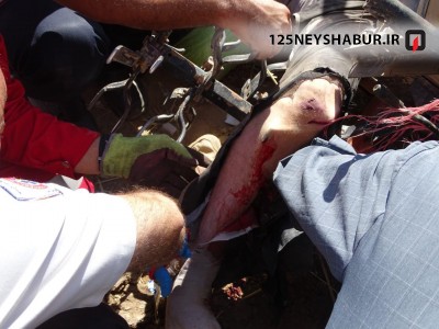طی تماس تلفنی با مرکز فرماندهی 125 نیشابور مبنی بر حادثه دیدن فرد کشاورزی در روستای شادمیانه سریعا" یک تیم امداد و نجات از ایستگاه یک بهمراه تیمی متشکل از معاونت فنی و عملیات ، مدیر روابط عمومی ، مدیر حوزه یک عملیات ، ریاست ایستگاه یک و پنج و یک تیم اطفاء حریق از ایستگاه سه با توجه به نزدیکی به محل حادثه اعزام شدند که پس از رویت فرد حادثه دیده و سطح بالای ظرافت کار و خطر وخیم شدن حال مصدوم با توجه به خونریزی و احتمال شکستگی های زیاد اقدام به امداد رسانی به فرد حادثه دیده نمودند این عملیات با توجه به ظرافت کار در حضور پرسنل فوریتهای پزشکی 115 و با مشاوره از ایشان انجام پذیرفت که پس از عملیات یک ساعت و نیمه پای فرد رهاسازی و پس از ثابت سازی پرسنل اورژانس فرد حادثه دیده به بیمارستان منتقل شد .