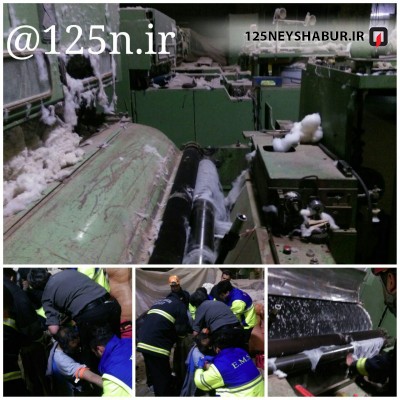 کارگری که مشغول کار با دستگاه کاردینگ حلاجی پنبه بود بر اثر بی احتیاطی دچار حادثه شد