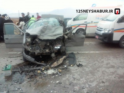 به گزارش روابط عمومی سازمان آتش نشانی نیشابور صبح امروز در اثر برخورد مستقیم دو خودرو پراید و آردی متاسفانه دو نفر کشته و سه نفر مصدوم شدند .