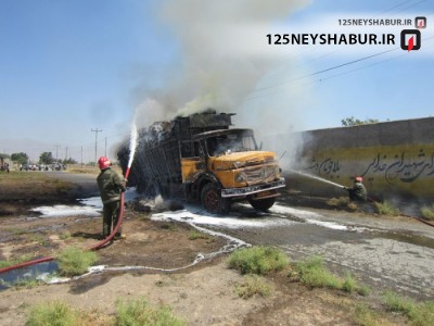 به گزارش روابط عمومی سازمان آتش نشانی نیشابور روز گذشته آتش سوزی یک دستگاه کامیون به سامانه ١٢۵ اعلام شد .