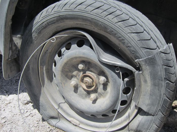 ترکیدن لاستیک پراید باعث برخورد خودرو با جدول و انحراف آن از داخل جاده شد .