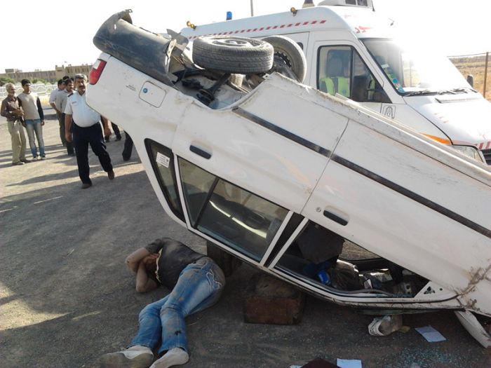 تصاویر سرعت زیادباعث واژگونی خودروپرایدشد