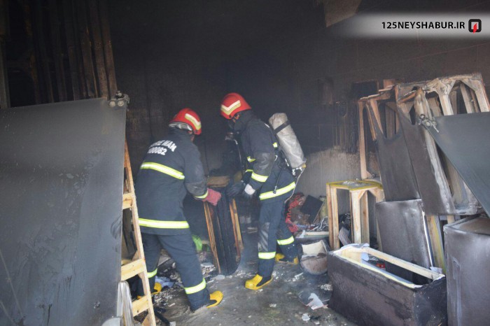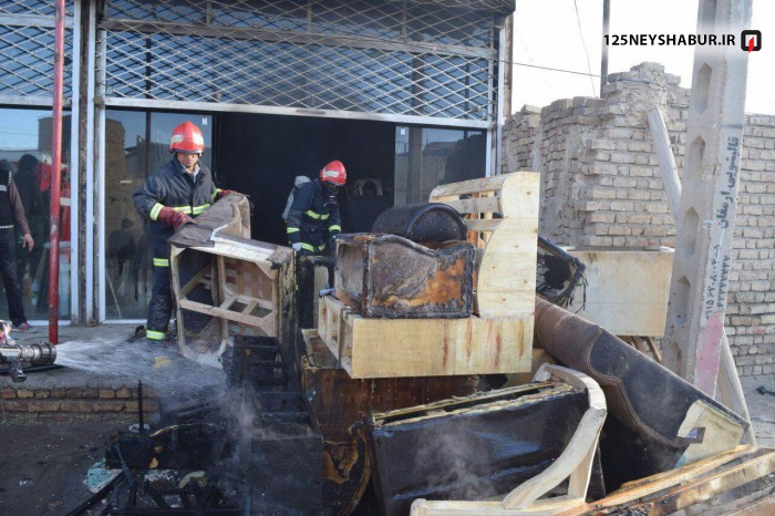 تصاویر بی احتیاطی موجب آتش سوزی در کارگاه تولید مبل شد