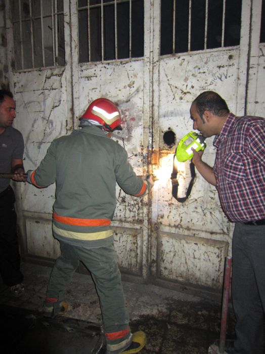 آتش نشانان با توجه به اینکه درب کارگاه قفل بود ابتدا اقدام به برش قفل در نمودند . بلافاصله پس از برش قفل اقدام به خاموش کردن آتش کردند .