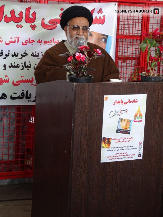 به گزارش روابط عمومی سازمان آتش نشانی و خدمات ایمنی نیشابور ، مهندس نجفی شهردار نیشابوردر آیین افتتاح این طرح گفت : رسوم و سنتهای قدیمی ما هر کدام پشتوانه ای از فرهنگ در خود دارد که متاسفانه برخی از آنها همچون آیین چهارشنبه سوری در سالهای اخیر از مسیر درست خود خارج شده است که باید رسوم غلطی که جایگزین رسوم آیینی ما شده حذف شود و همچنین با پایه گذاری رسوم و فرهنگهای اسلامی و انسان دوستانه ، اینها را جایگزین رسوم غلط نماییم .