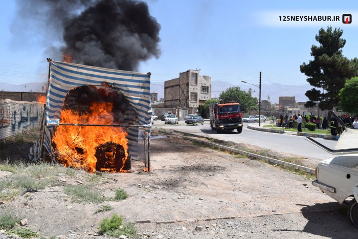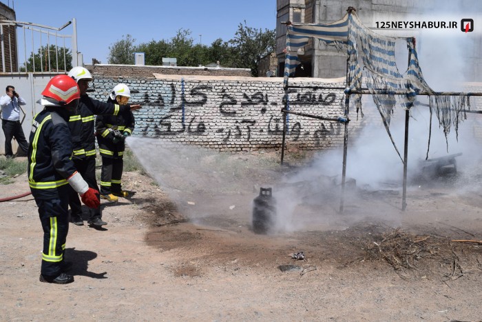 آتش نشانان نیشابور با برگزاری مانورعملیاتی ترکیبی اطفای حریق و امداد و نجات در میدان گنبد سبز آمادگی خود را به نمایش گذاشتند .