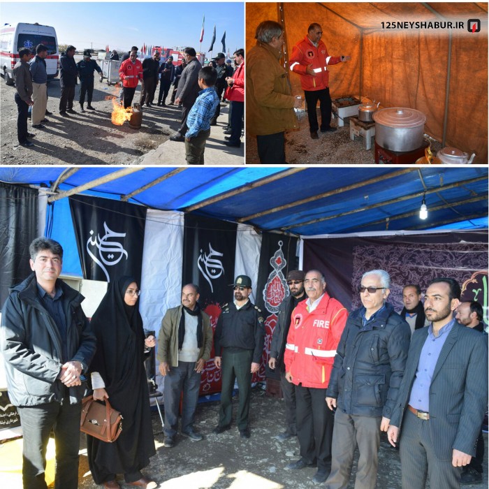 کارشناسان ایمنی و پیشگیری از حریق سازمان آتش نشانی نیشابور روز جمعه ١١ آبان از استراحت گاه ها و موکب های پذیرایی صلواتی زائران امام رضا (ع) در مسیر نیشابور تا ملک آباد بازدید به عمل آوردند .