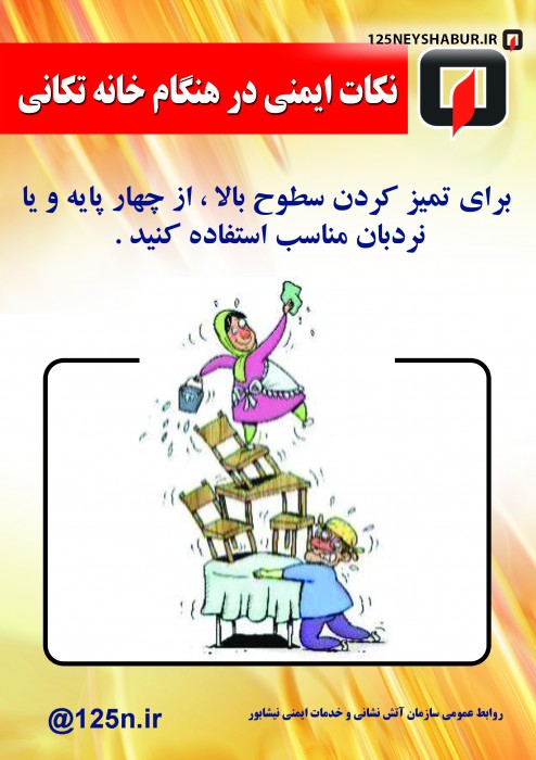 با رعایت نکات ایمنی در هنگام خانه تکانی به سلامت به استقبال نوروز بروید .