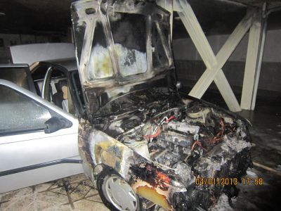 تصاویر آتش سوزی خودرو در پارکینگ منزل مسکونی