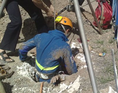 این چاه در ساختمان در حال ساختی برای ارت ساختمان حفر شده بود که گربه نگون بخت به داخل آن سقوط نموده و نتوانسته بود بیرون بیاید . با تماس شهروندان به سامانه 125 نجاتگران آتش نشان به محل اعزام شدند . یکی از نجاتگران با استفاده از ابزار فنی به داخل چاه فرود رفته و گربه را داخل کیسه ای گذاشت و با خود به بالای آورد .