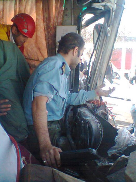 آتش نشانان پس از نصب علائم هشدار دهنده اقدام به رها سازی مصدومین کردند . نجاتگران ابتدا صندلی شاگرد را از پایه برش دادند تا فضا برای رها سازی راننده ایجاد شود . سپس با استفاده از جک تلسکوپی قسمت داشبورد را که بر روی پاهای راننده فشار آورده بود حرکت دادند و سپس با برش حلقه فرمان راننده به طور کامل رها سازی شد و توسط امدادگران اورژانس به آمبولانس انتقال یافت . بعد از آن با برش صندلی راننده زانوی چپ سرنشین پشت سر راننده نیز رها شد و ایشان نیز جهت درمان به بیمارستان انتقال یافت .