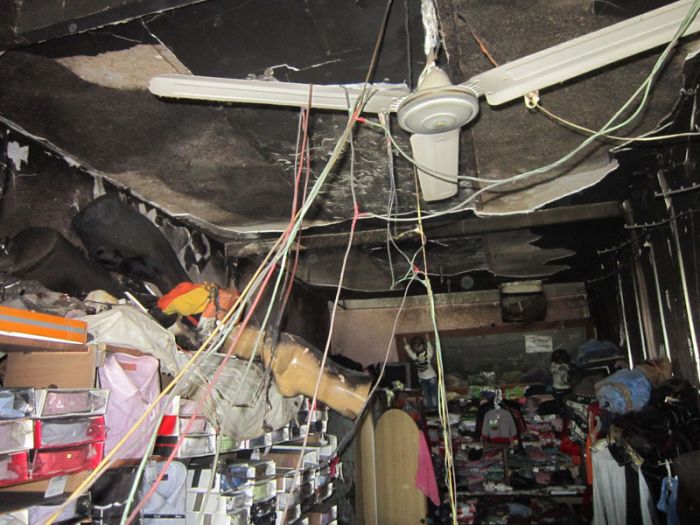 آتش نشانان پس از بریدن قفلها و قطع برق و گاز اقدام به خاموش کردن آتش نمودند . در اثر این آتش سوزی کلیه لباسهای مغازه در آتش سوخت و یا آسیب دید . طبقه دوم این فروشگاه انبار یک مغازه تزئیناتی بود . آتش نشانان توانستند شعله های سرکش آتش را که تازه به طبقه دوم سرایت کرده بود مهارکنند و آتش را به طور کامل خاموش نمایند .
