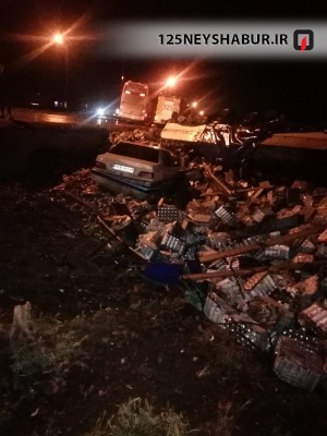 تصادف زنجیره ای در محور نیشابور به مشهد ، مقابل سردخانه منجر به فوت یک نفر و مصدوم شدن ۴ نفر دیگر شد