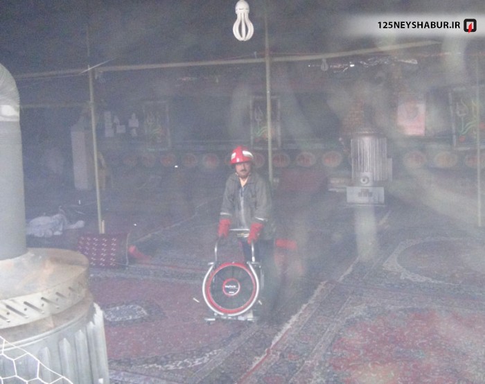 بخاری نفتی حسینیه موقت مسجد مهر ولایت دچار آتش سوزی شد .