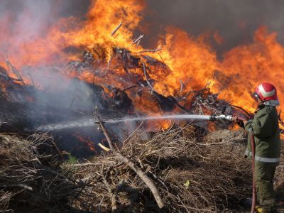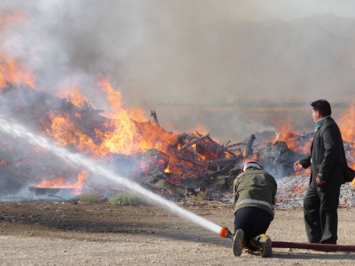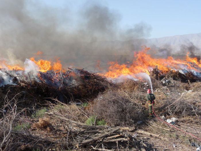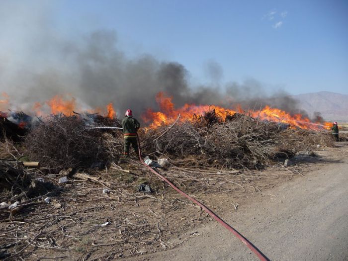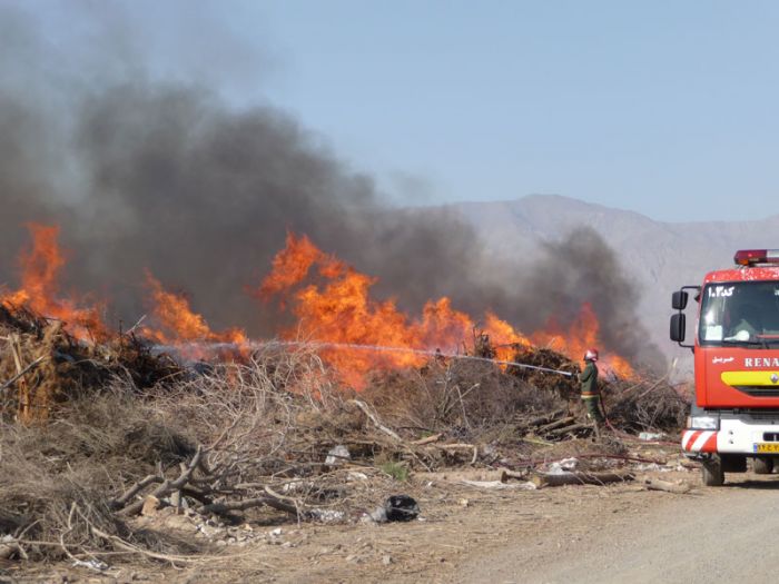 تصاویر آتش سوزی انبار چوب و سرشاخه