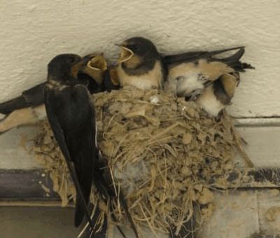 یک پرستو هنگام خارج شدن از لانه ، تکه نخی که در جلو آشیانه بود به پایش پیچید و حیوان معلق در هوا ماند .