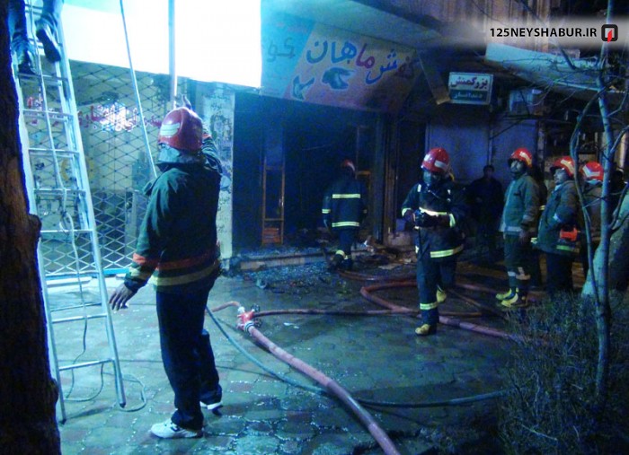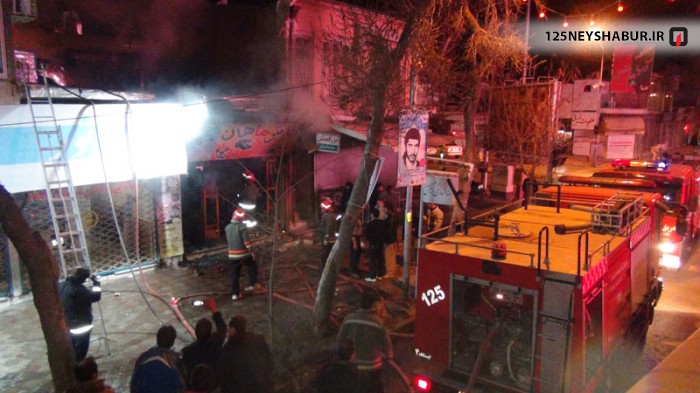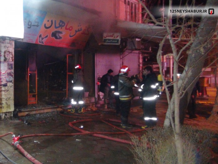 با اعلام این آتش سوزی به ستاد فرماندهی آتش نشانی نیشابور بلافاصله یک تیم از آتش نشانان به محل اعزام شدند . با رسیدن اولین تیم و مشاهده ی شعله های آتش که از مغازه به بیرون می زد فرمانده تیم اعزامی درخواست نیروی کمکی و پشتیبانی آب نمود .