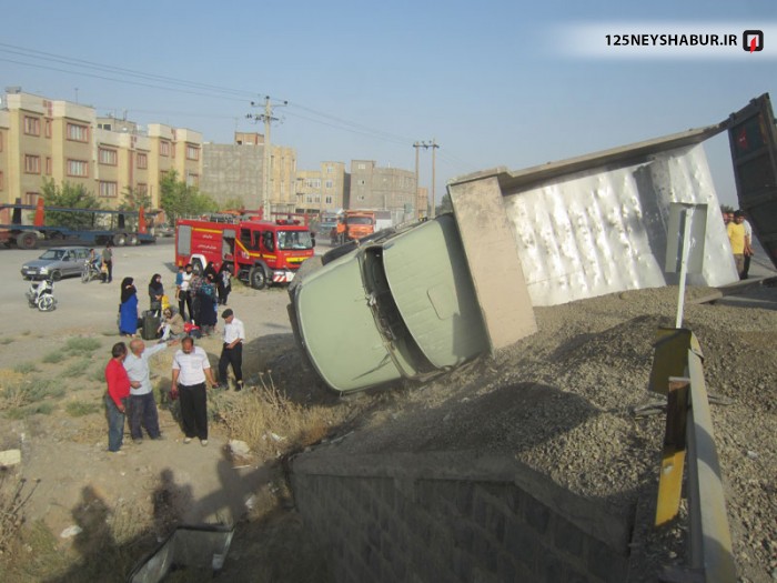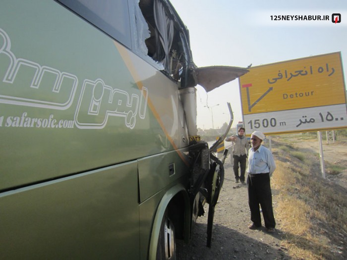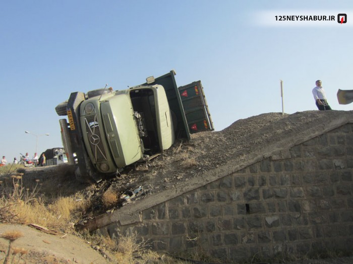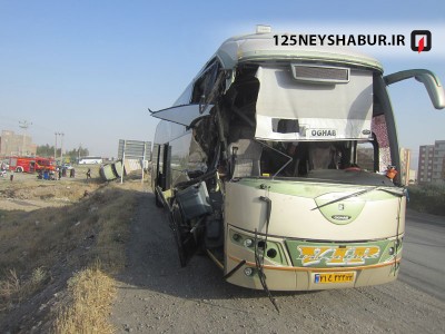 این حادثه که در بلوار 76 متری امام رضا و در محور نیشابور به مشهد رخ دادموجب واژگونی کامیون ماسه ، آسیب دیدن اتوبوس و مصدوم شدن شش نفر از مسافران اتوبوس شد .