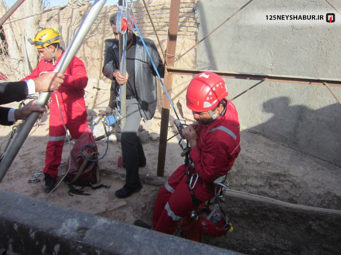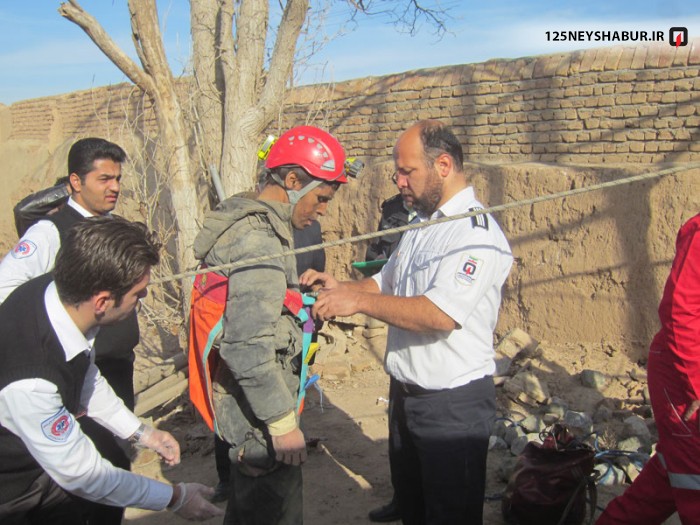 با اعلام این حادثه به ستاد فرماندهی 125 نیشابور یک تیم نجات به محل اعزام شد . آتش نشانان در آنجا با فردی مواجه شدند که به درون چاهی به عمق 16 متر سقوط کرده بود . وی توانسته بود با استفاده از لوله انتقال آب تا عمق حدود 5 متر خود را بالا بکشد و در آنجا ماند ه بود . نجاتگران آتش نشان پس از بررسی موقعیت چاه بلافاصله با ستفاده از 3 پایه نجات و ابزار نجات در چاه این فرد را نجات داده و تحویل امدادگران اورژانس 115 و ماموران نیروی انتظامی دادند .